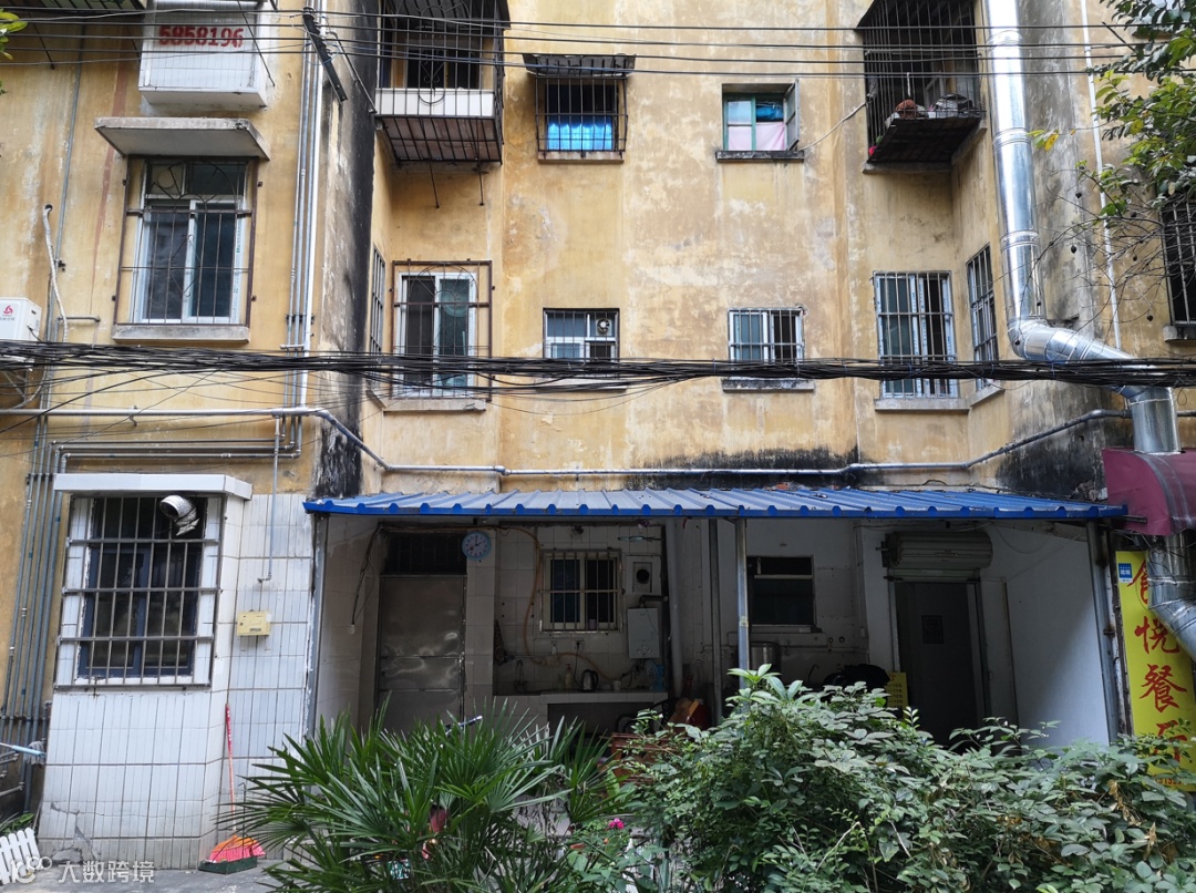 由于建设年代久远,大部分的楼栋外墙上都沉淀着一层黑色物质,一块一块不均匀地分布,像是长在房子上的老年斑。