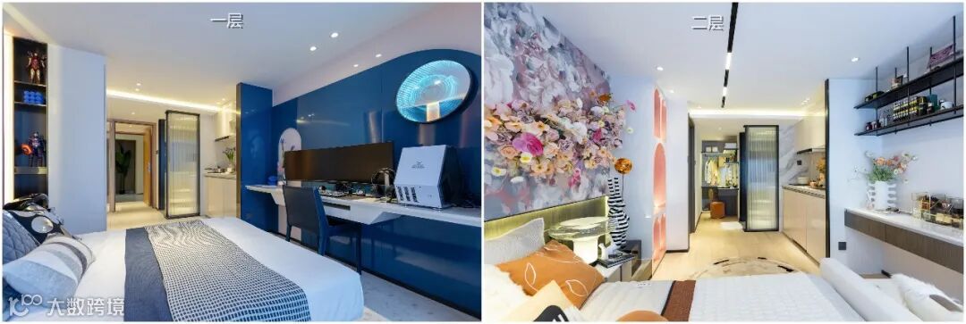 样板间的解锁方式是居住:一楼做独立公共空间,二层相当于一个带卫生间的两居室,单独的卧室、单独的衣帽间及卫生间。