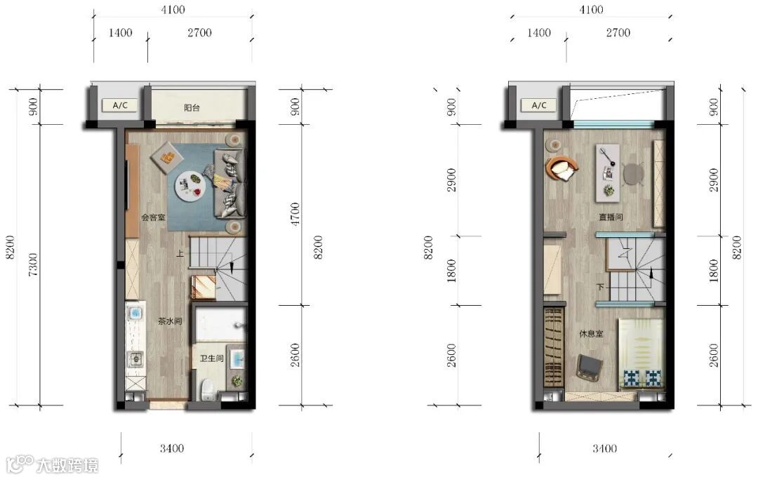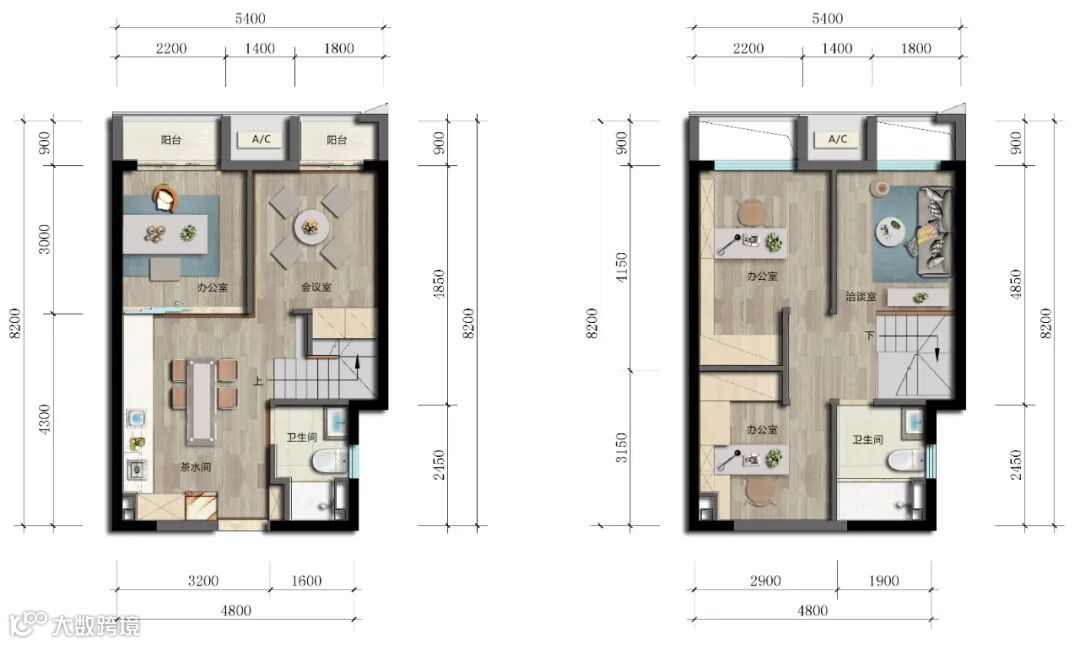 相比35㎡的户型,55㎡户型的空间更“奢侈”了,因为层高达5米,同样可以分上下两层,从而最大的空间可达到110㎡。加大的空间,除了具备35㎡户型的所有用途外,非常适合人数不多的初创公司。