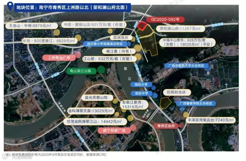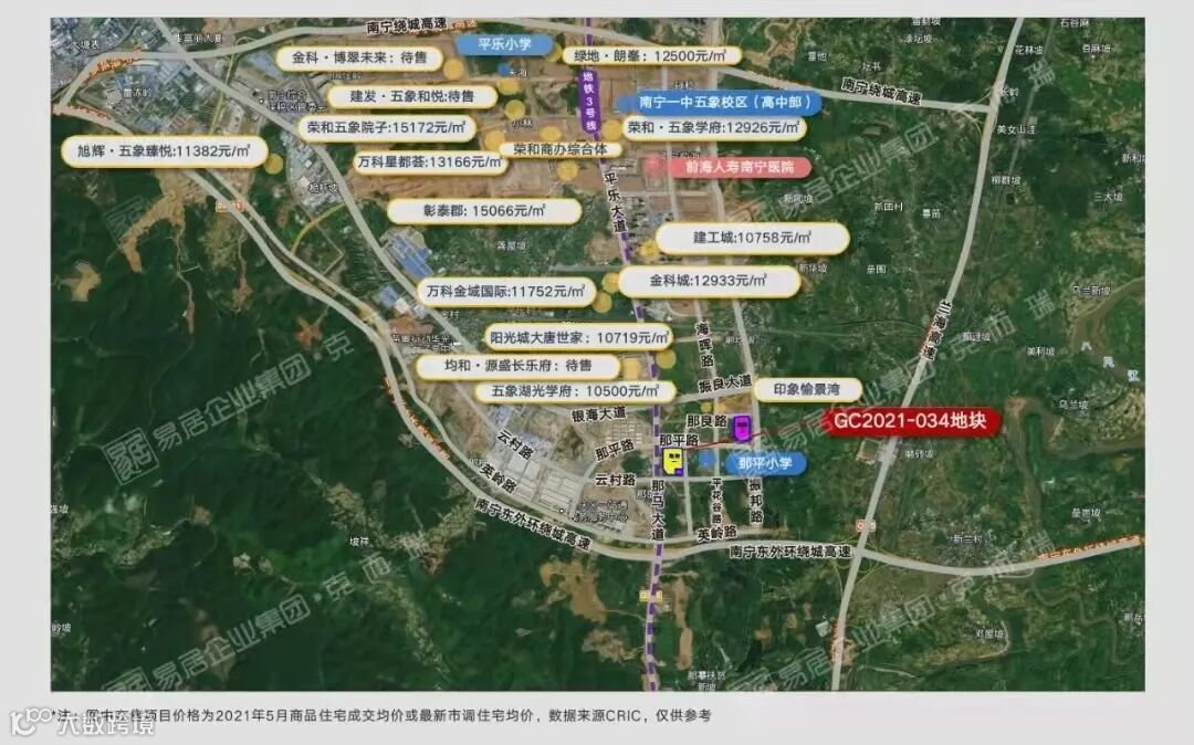 项目周边在售楼盘有五象湖光学府、阳光城大唐世家、万科金域国际等,参考价格约1万-1.2万/元/㎡。