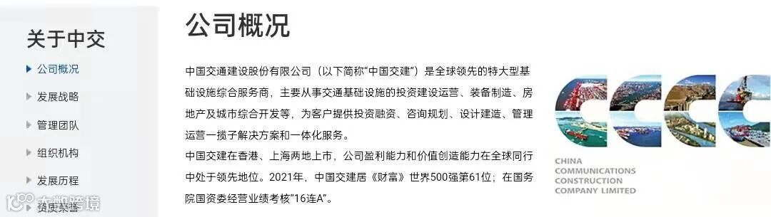 但是,这个企业是真正的大佬。中交集团是世界500强企业,排在61名,背后的实力足见一般。其中,著名的港珠澳大桥、杭州湾大桥、上海洋山港等都是由中交集团建设。