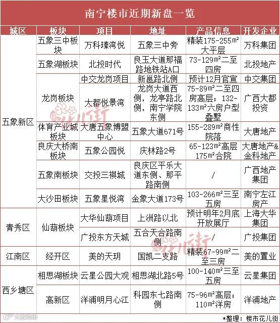 而让我们意外的是,现在以及到明年1月份,小花统计约有13个项目。五象还是这么香,在13个项目里就占了8个。