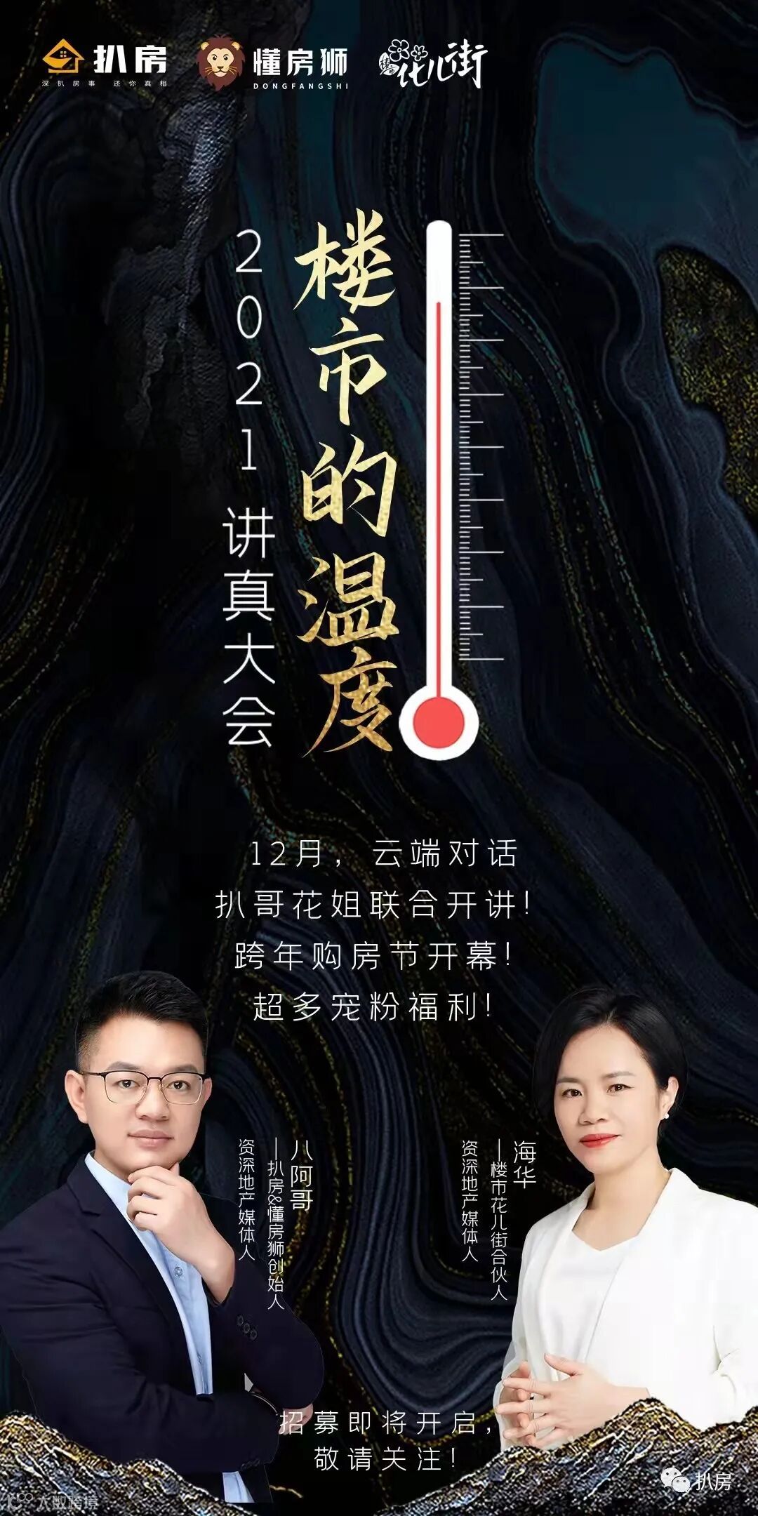 “2021讲真大会·楼市的温度”将于12月19日正式开讲。届时,扒哥和花姐将带来重磅干货以及精彩的楼市分享。