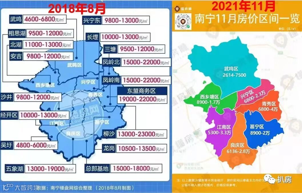▲2018年VS2021年11月南宁各板块房价(楼盘网、懂房狮)