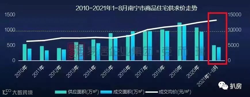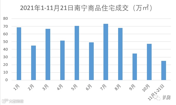 今年1月-11月21日,南宁新建商品住宅成交量仅为600万㎡。假如12月迎来翘尾行情,成交量达80万㎡,那么,2021年全年的成交量不足700万㎡。