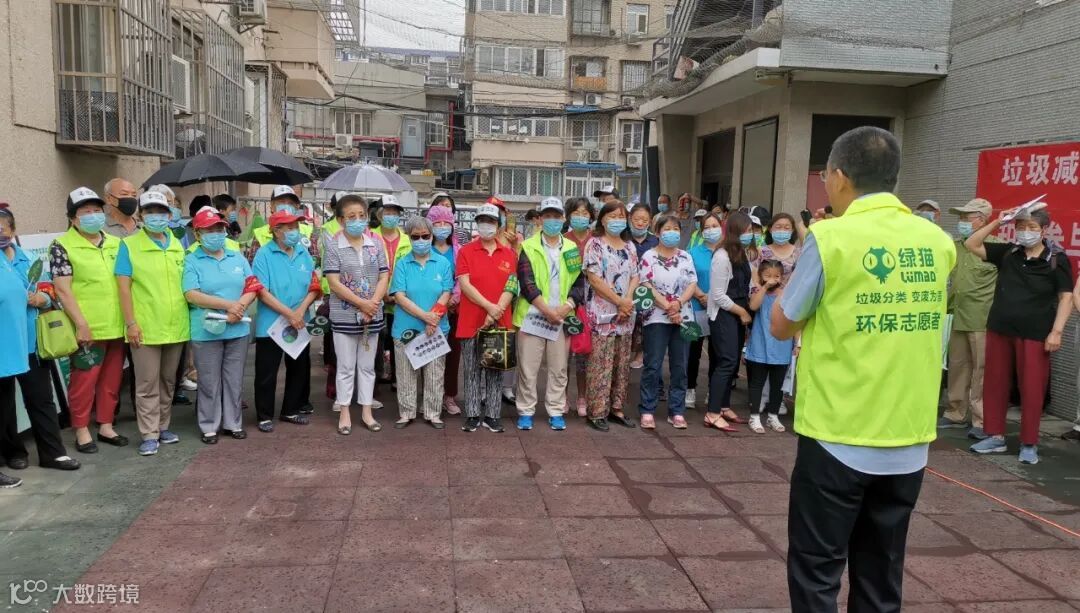 ,东四街道总院社区书记郭小金、绿猫负责人刘权、物业房修一物业负责人朱婷婷、社区居民以及垃圾分类志愿者等80余人参与此次活动。