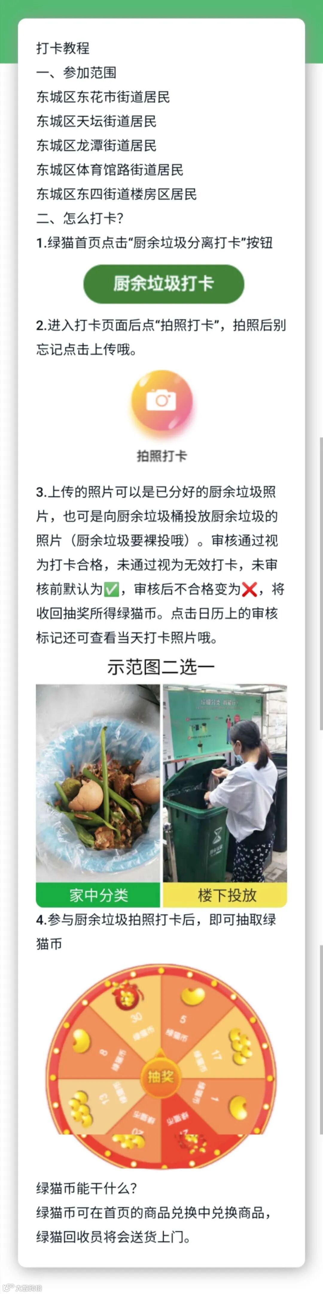 3、所有用户每次厨余打卡后还可玩转盘赢取绿猫币(绿猫币可用于商品兑换)