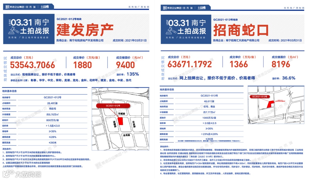 从举牌情况来看,竞争都颇为激烈。建发五象南地块12家房企举牌100多次,招商龙岗E街区地块,举牌155笔竞拍两个半小时。足见两个板块的热度都不低。