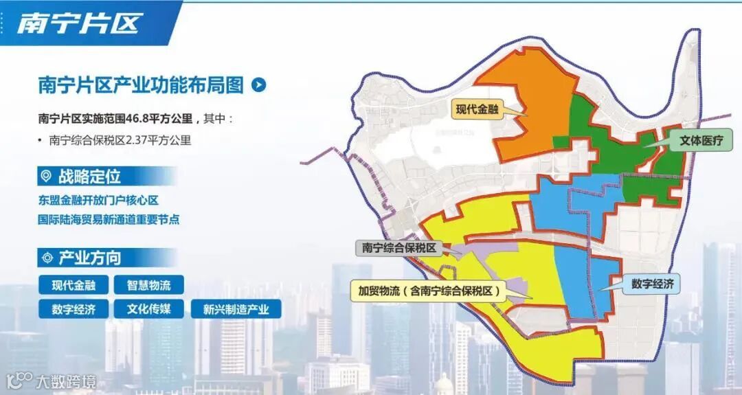 五象南的优势在于,有高密度的产业规划,加上万有这样重量级的配套加入,未来能够吸引一部分人口迁移过来。五象南承担了物流、产业集群的功能,在广西自贸区南宁片区的板块划分上,五象南涵盖了加贸物流(含南宁综合保税区)+数字经济两大板块。