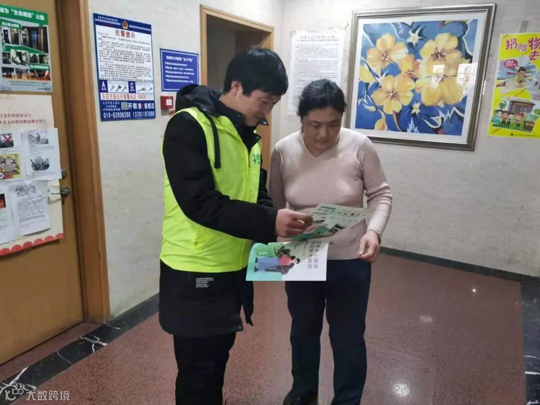 宣传中向居民发放垃圾分类宣传页,讲解生活垃圾的分类类别、投放方式,引导居民从环境卫生、文明生活的角度,入户宣传有效地增强居民的垃圾分类意识,真正做到垃圾分类齐动手、保护环境共行动。