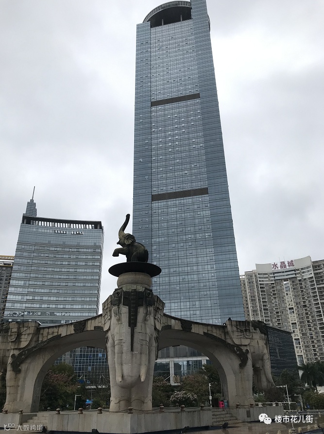 雕像下面,喷泉看上去已经退休多年,喷泉装置跟一排排被吹灭的蜡烛一样无用地摆在没有水的池子里。四周高楼林立,民族大道上的车辆川流不息,路过的人脚步匆匆,这个广场,就像“房间里的大象”一样被遗忘着。