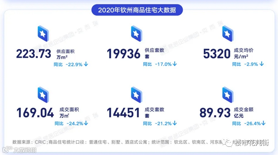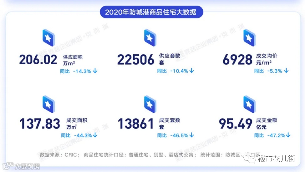 成交均价6928元/㎡,同比下降5.3%。全年商品住宅成交金额95.49亿元,同比下降47.2%,比北海的下浮还大!北海和防城港放在一起,简直能开个“拼跌”大会了!