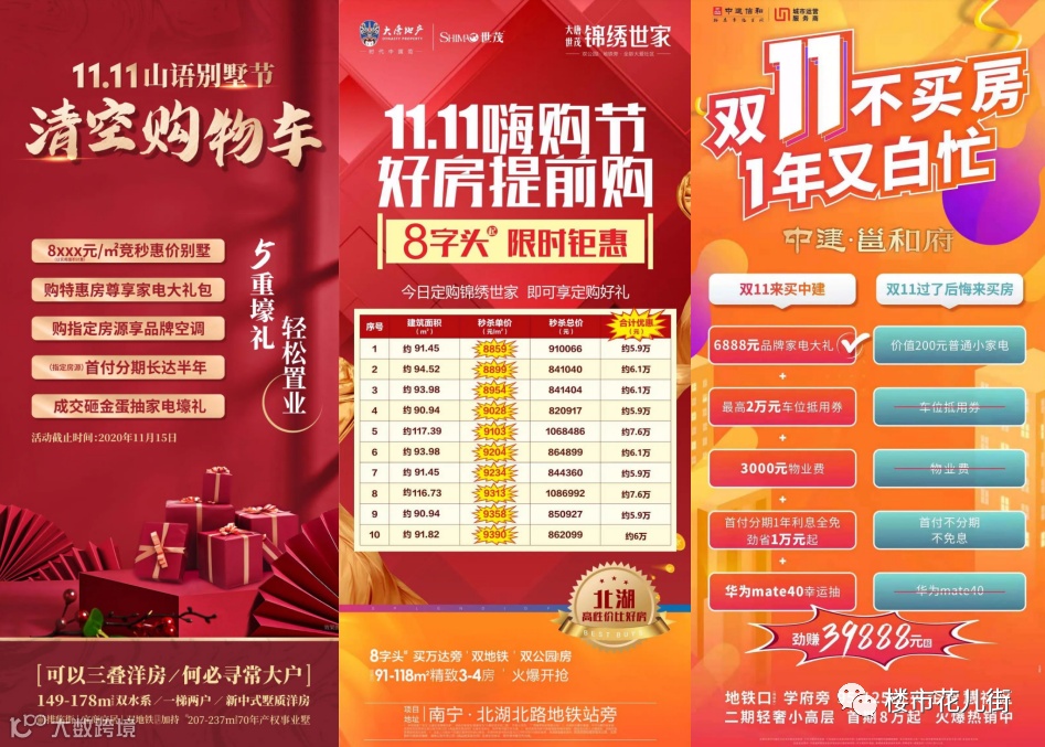 所以为了走量,开发商的优惠一直没有停过,而且一波比一波力度大。更别提双十一这样的大节点,真是年年都有双十一,今年特别猛。