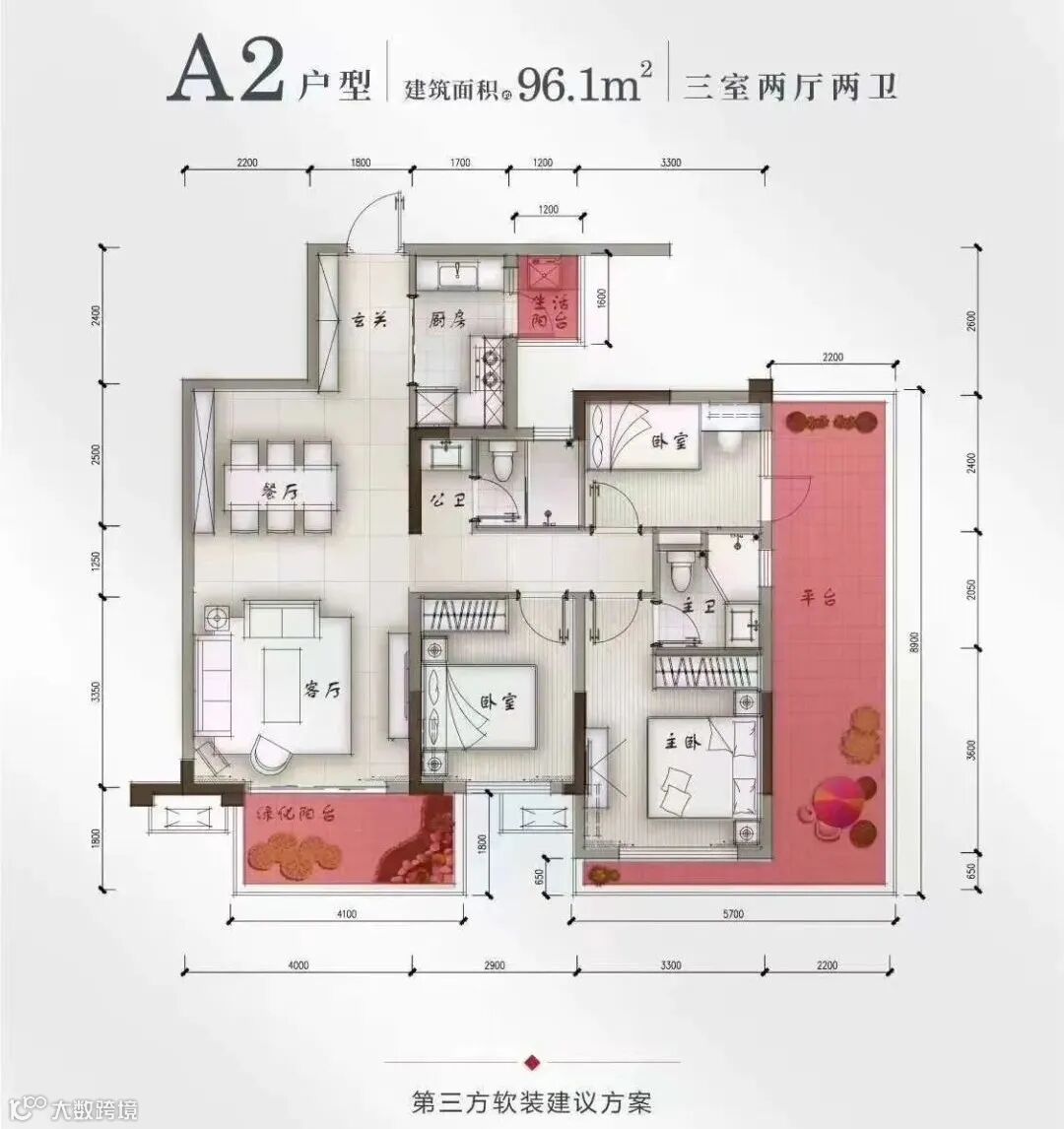 比如国庆前,联发臻境推出的一款位于6层洋房的顶层产品,107㎡的顶复,朝南8.65米宽的超大阳台,面积是全赠送的。