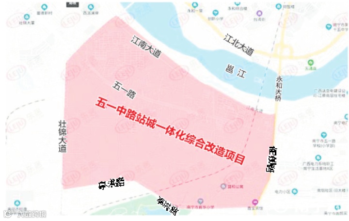 南宁市公共资源交易中心发布的五一中路站城一体化综合改造项目前期调查位置示意图如下👇