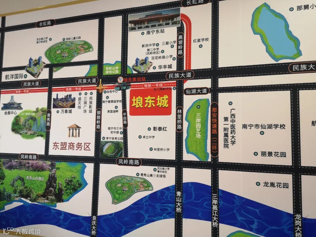 除了“埌”和“琅”傻傻分不清楚,在墙上的区位图里,仙葫大道的“葫”字可能是请了病假吧,它的堂弟“湖”来顶班了。