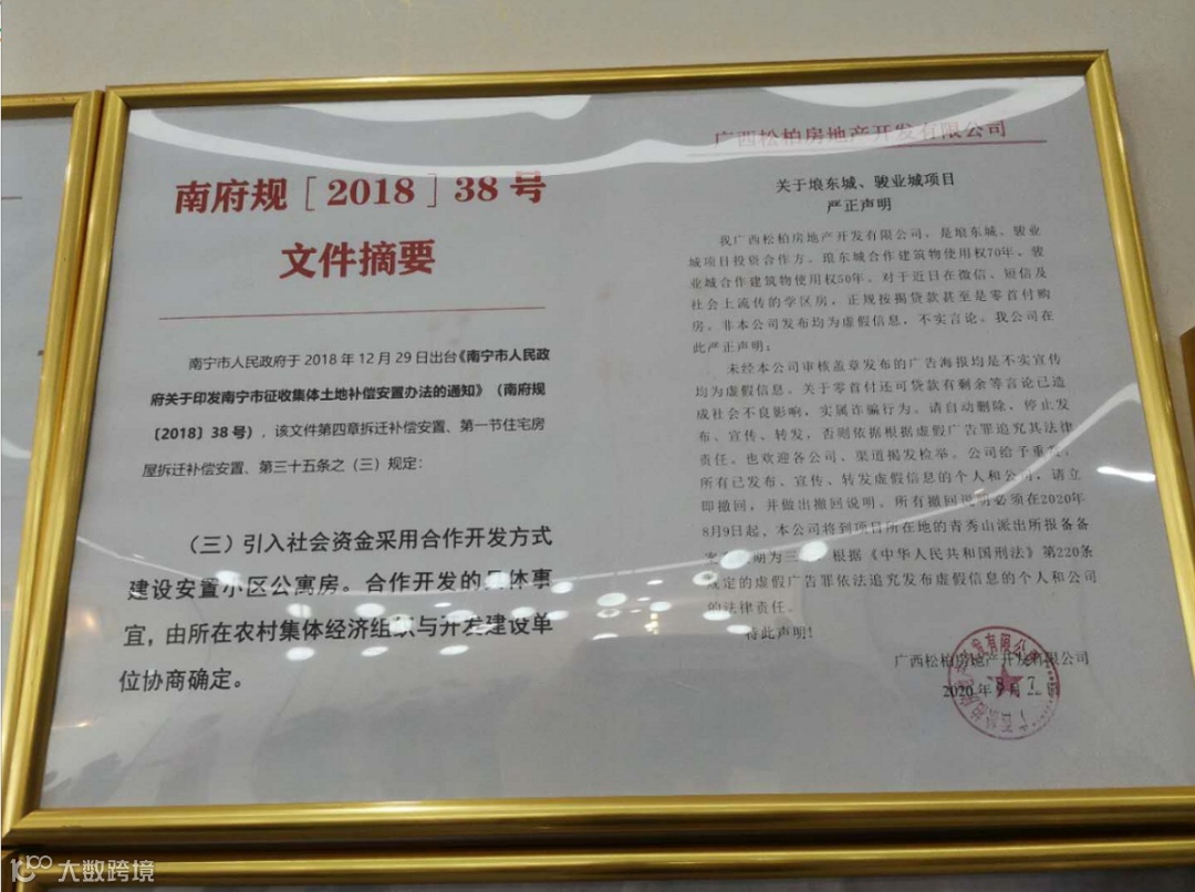 在8月7日埌东城的开发公司的一份声明里,有这样的表述“埌东城合作建筑物使用权70年,骏业城合作建筑物使用权50年”。你交钱给开发商,你认为是买房,对方却说这是你出钱跟他合作建房;你以为你能拥有房子的产权,但人家说了,你只有70年的使用权。