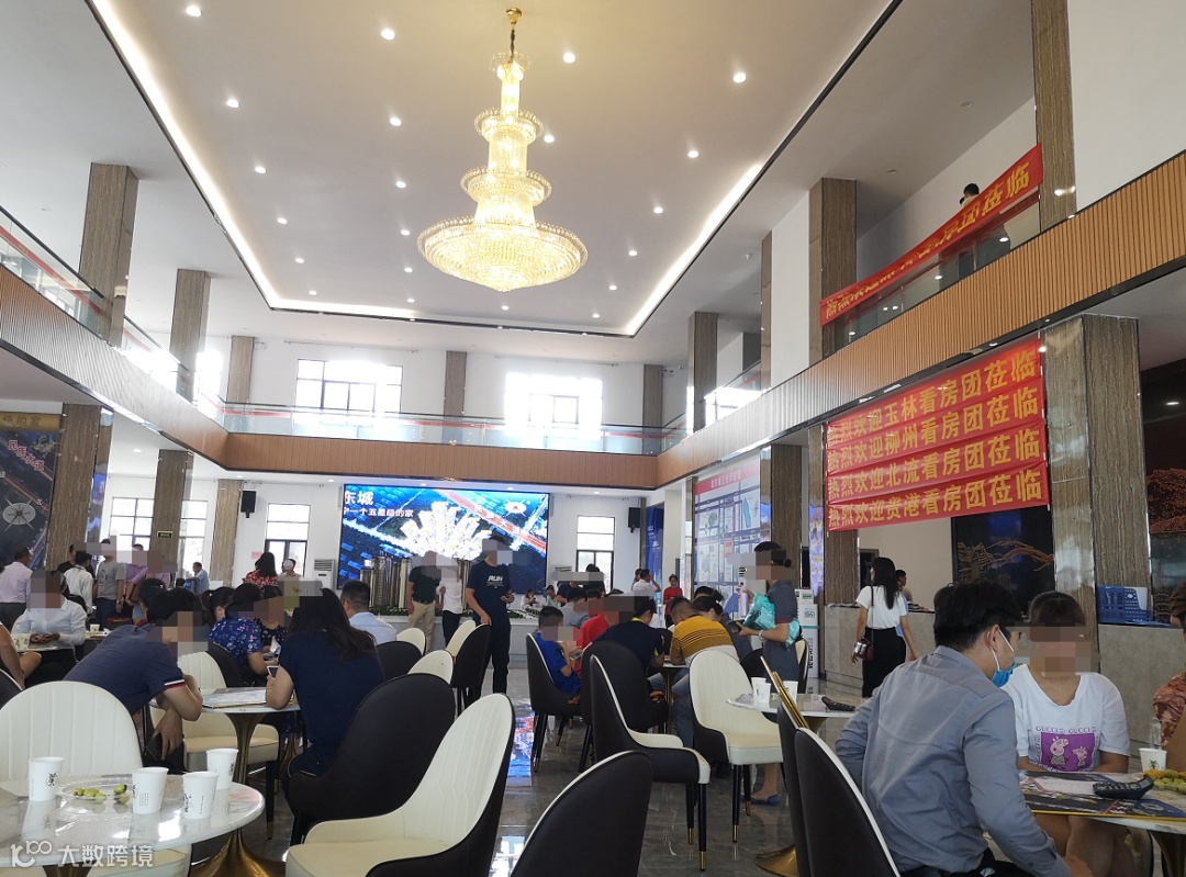 还有,到下沉县份市场去拉客户看房,几乎是每个项目的标配动作。槽哥在埌东城招商中心看到满屋子的人,据销售人员讲,基本上都是周边市县的人,那些“欢迎玉林看房团莅临”、“欢迎柳州看房团莅临”的横幅已经呼应了这一点。