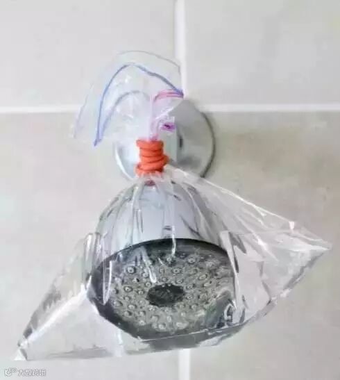 家里的淋浴喷头有时候水劲变小了,可能是小孔里面有脏东西堵住了,用白醋和水一比一兑好,装在塑料袋里,扎在喷头上,十五分钟后还你一个新的喷头~
