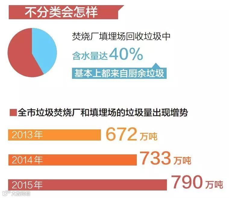 数据显示,2013年全市进 入垃圾焚烧厂和填埋场的垃圾总量为672万吨,2014年 为733万吨,2015年为790万吨,平均每年增加60万吨左 右。“60万吨相当于一个中型垃圾焚烧厂一年的处理能 力,这无疑增加了垃圾焚烧厂和填埋场的运转压力,因此 减少厨余垃圾混入量,减少焚烧垃圾的水分和有机物含 量,才能有效缓解这种压力。”