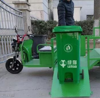 4. 整理完的厨余垃圾桶(120L小桶)由专用垃圾桶清运电动车运到660L收集桶处集中。