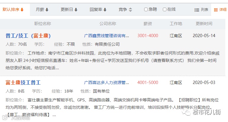 花儿姐在广西人才网站随意搜索了一下,当前普通工种的工资水平,以4000元左右的水平为大多数。