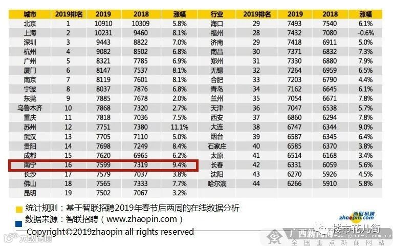 2019年,南宁人的以月工资7599元,排在全国的第19位。高于长沙、佛山、昆明、福州、合肥等城市!