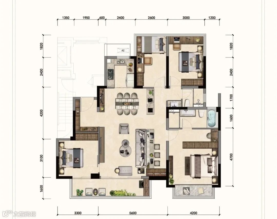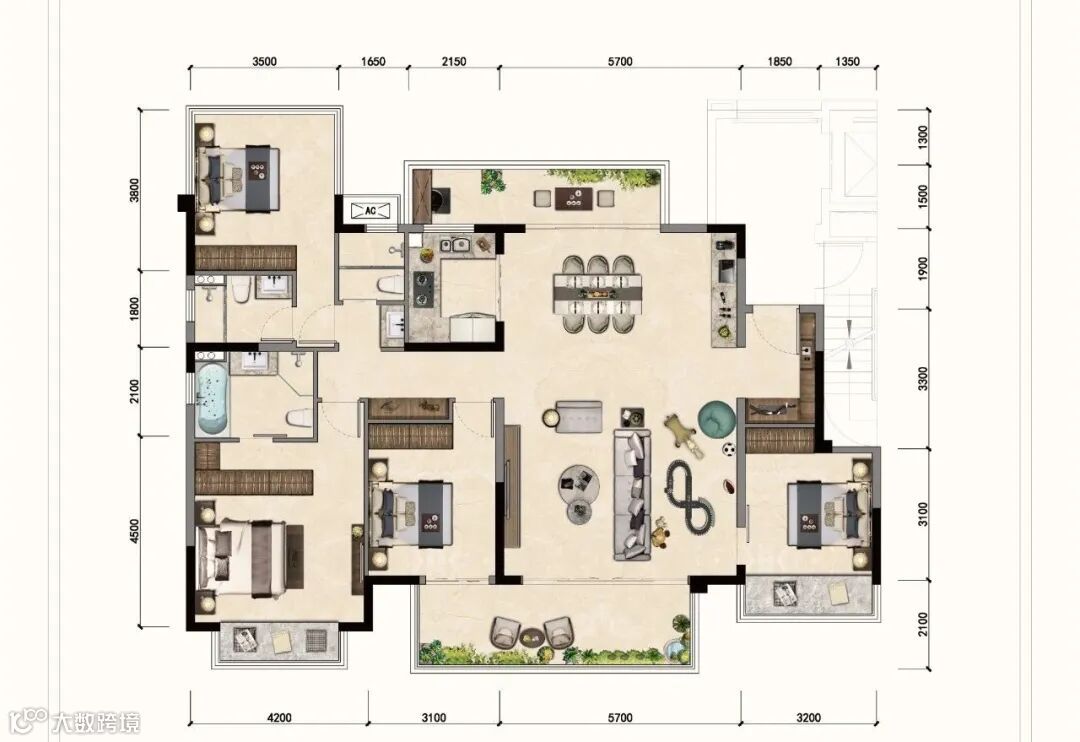 说实话,这是花儿姐觉得目前建发央玺呈现出来最好的那一个户型了,可以打95分。171㎡是在洋房产品里,同样是私家的电梯厅入户。47㎡的超大方厅真香,5.7米的超宽空间,客厅够大气,南北对流的阳台,厨房可以做分开的中西厨。让改善家庭最喜欢的一个设计是,居然有两个带卫生间的套房,三个房间朝南。爱了,爱了。