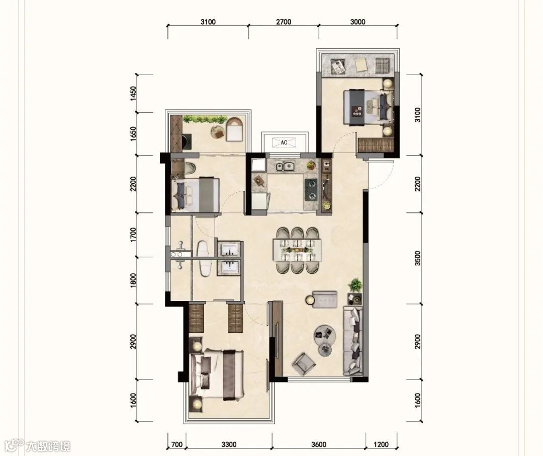 建发央玺67㎡小户型放在目前五象湖70㎡以内的小户型产品对比,显得挺优秀。户型尺度非常的难得,居然做出了2个3.1米X3米的卧室,还有4.8米宽的阳台,并且干湿分离。花儿姐已经可以想象到,计划买一套十四中五象校区学区房的老父亲老母亲的渴望了。能做出这个产品的原因,文章后面再说。