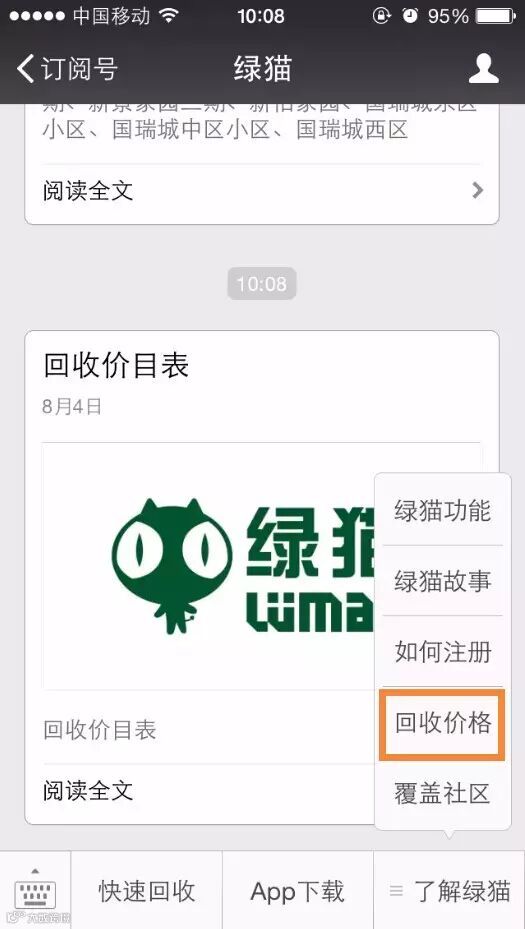 绿猫为您服务,价格已内置在回收的专用设备里,上门人员不能更改。