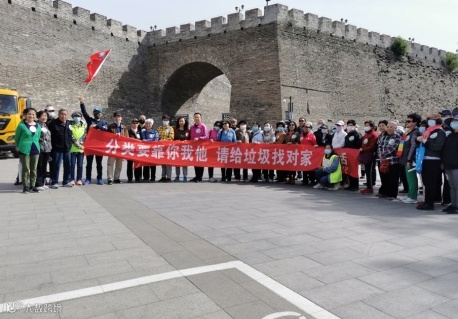 2021年4月28日,东花市街道北里东区社区组织60余名志愿者在明城墙遗址公园,开展“分类要靠你我他 请给垃圾找对家”——垃圾分类宣传健步走活动,倡导广大市民提高环保意识,主动参与生活垃圾分类工作。