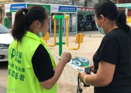 “绿猫”宣传员为居民发放垃圾分类宣传资料,通过垃圾分类宣传展板进行讲解,如何通过垃圾分类管理和再生资源回收,最大限度实现再生资源“减量化、再利用、资源化、无害化”。现场居民群众了解到再生资源分拣与处理的繁琐程序及高额成本,深刻感受到再生资源回收的必要性。随后指导居民安装及使用“一键呼叫”上门回收程序,让居民足不出户享受便利的上门服务,即解决可回收物的出售问题,又得到切实的实惠。