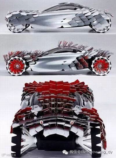 宝马乐简(Lovos)概念车,满身覆盖260块可以随着太阳独立转动的太阳能电板“鳞片”,能最大限度的收集太阳能。