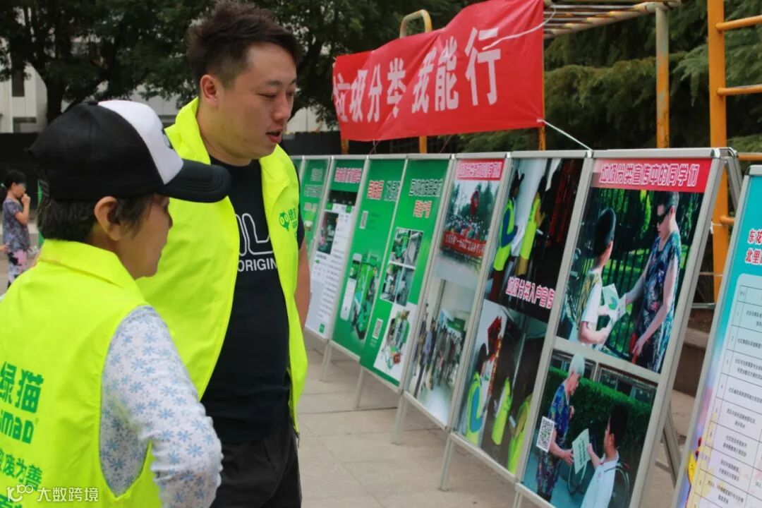 7月6日,绿猫在花市北里西区和枣苑社区开展“垃圾分类我能行,党员带头做表率”活动。报到党员、社区居民等近50人参加了活动。