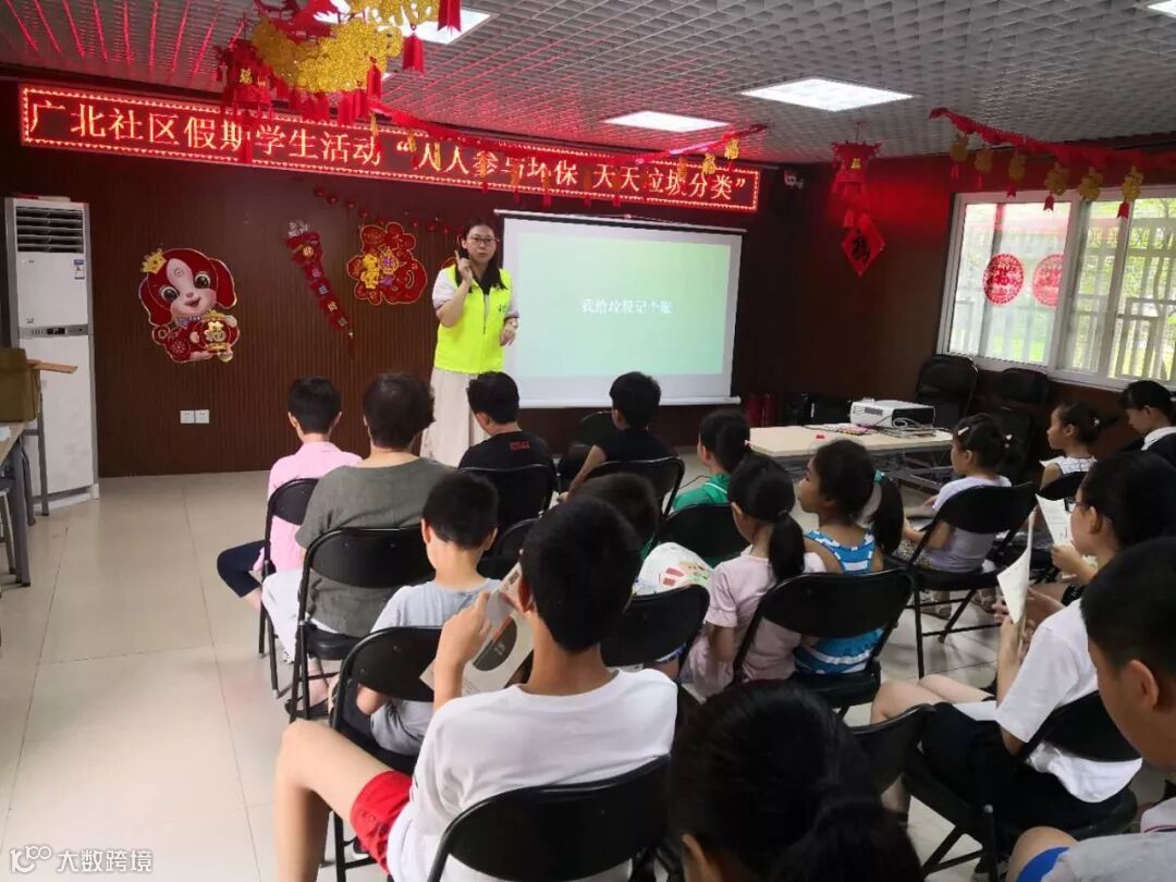 7月30日,由广北社区居委会组织的“我给垃圾记个账”学生暑期活动在广北社区活动中心举行。