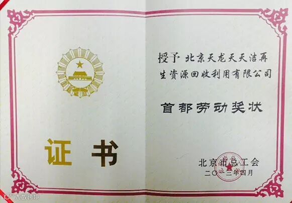 5. 2006年,被认定商务部、北京市第一批再生资源回收体系产业化试点企业。2007年5月10日,商务部副部长姜增伟同志到天天洁再生资源网点考察再生资源体系建设工作 。