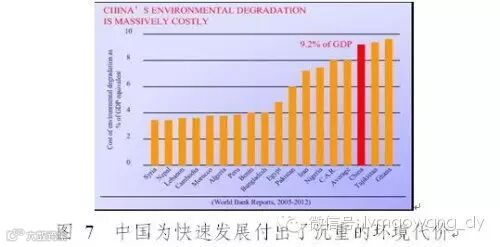 微生物生长最重要的养分是氨氮,氨氮融入气溶胶与微生物相遇,成为微生物快速繁殖的营养剂。氨氮来源于土壤和水源富营养化污染。改革开放以来,中国经济快速发展,也带来严重环境代价,图7显示中国2012年GDP增长7.8%,外部环境损失占GDP的9.2%。
