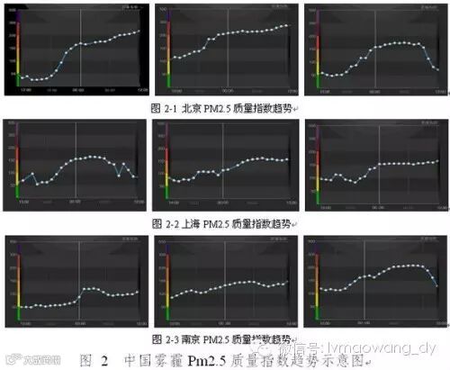 (2)中国“雾霾”强度在宏观上与大气污染物排放强度呈反向变化趋势,与欧美不一样。夜间,运行中汽车大幅减少、工厂停产、工地停工、发电厂负荷下降,大气污染排放强度降低,雾霾强度却显著增强;早上,生产生活恢复正常,污染排放强度提高,雾霾强度却呈稳定或下降趋势。这不是偶然现象,而是一般性规律,图2-1,2-2,2-3数据来自中国环保部。