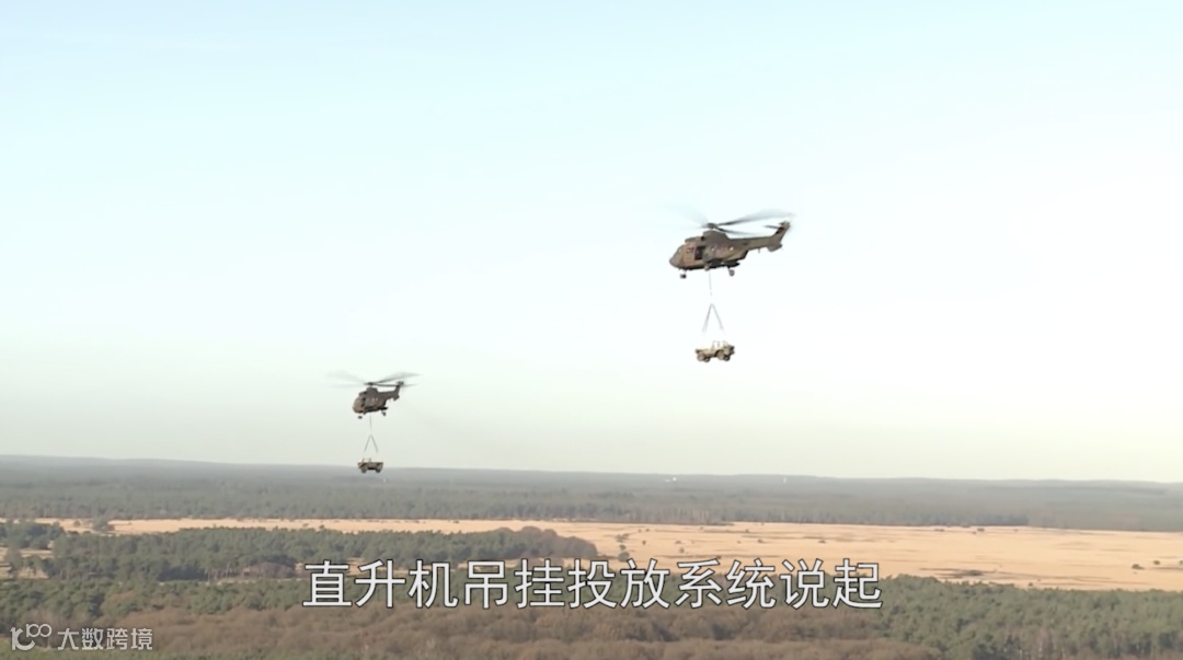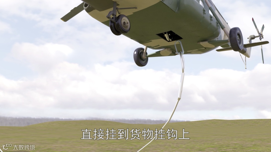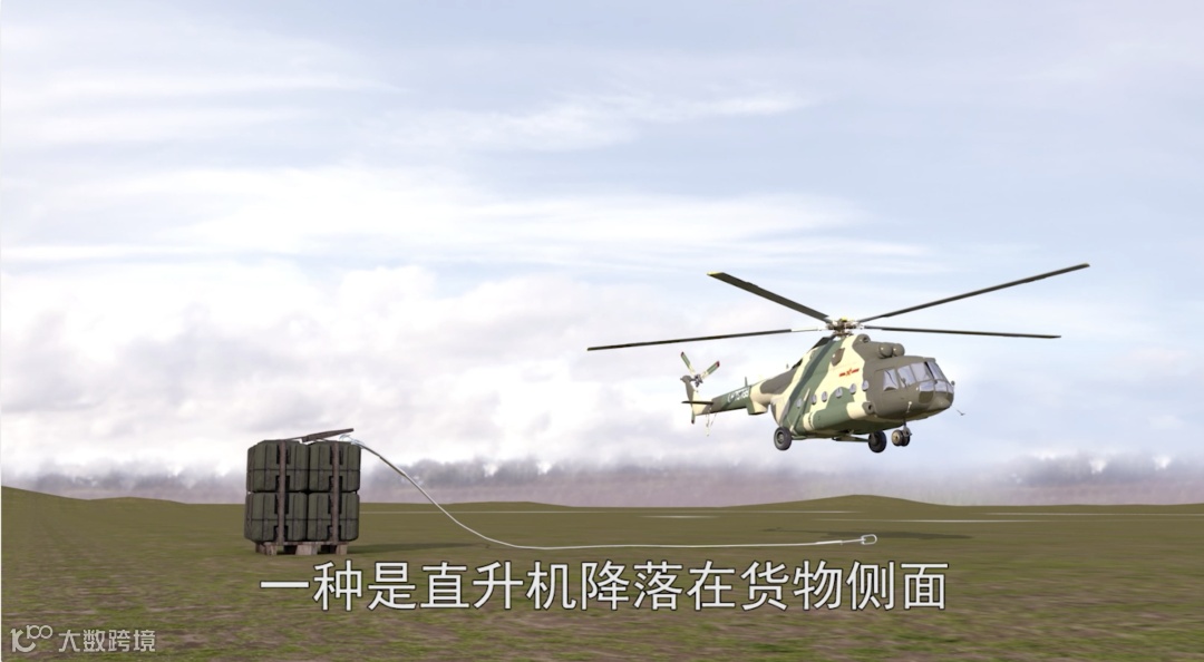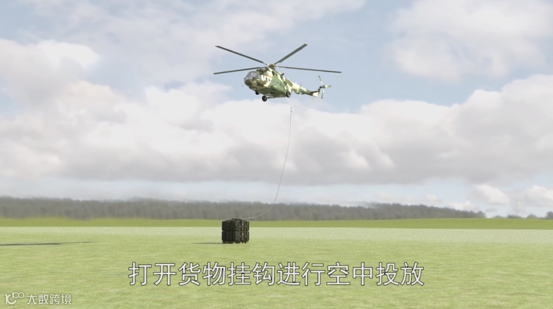 通常在货物着地后,直升机降落到设备侧面,打开货物挂钩进行投放。