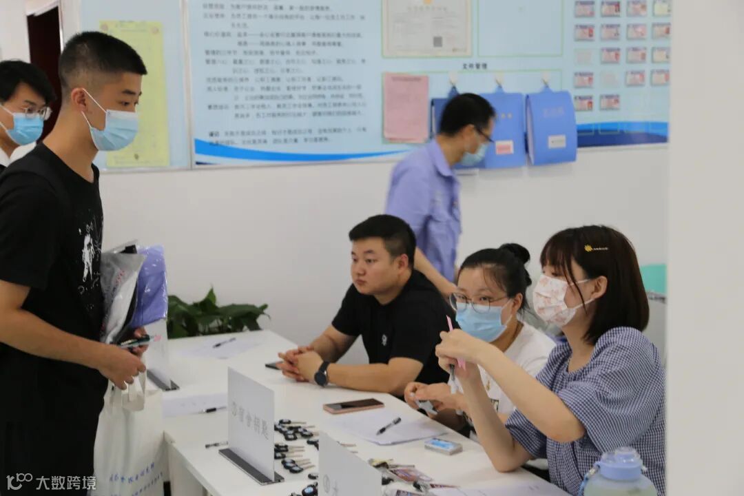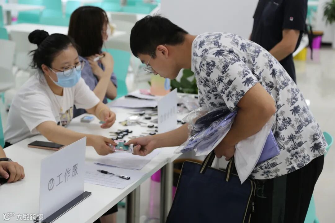 另一工作场地,人力资源部和综合管理部同事有序办理资料审核、工服发放、水电卡发放等事项。