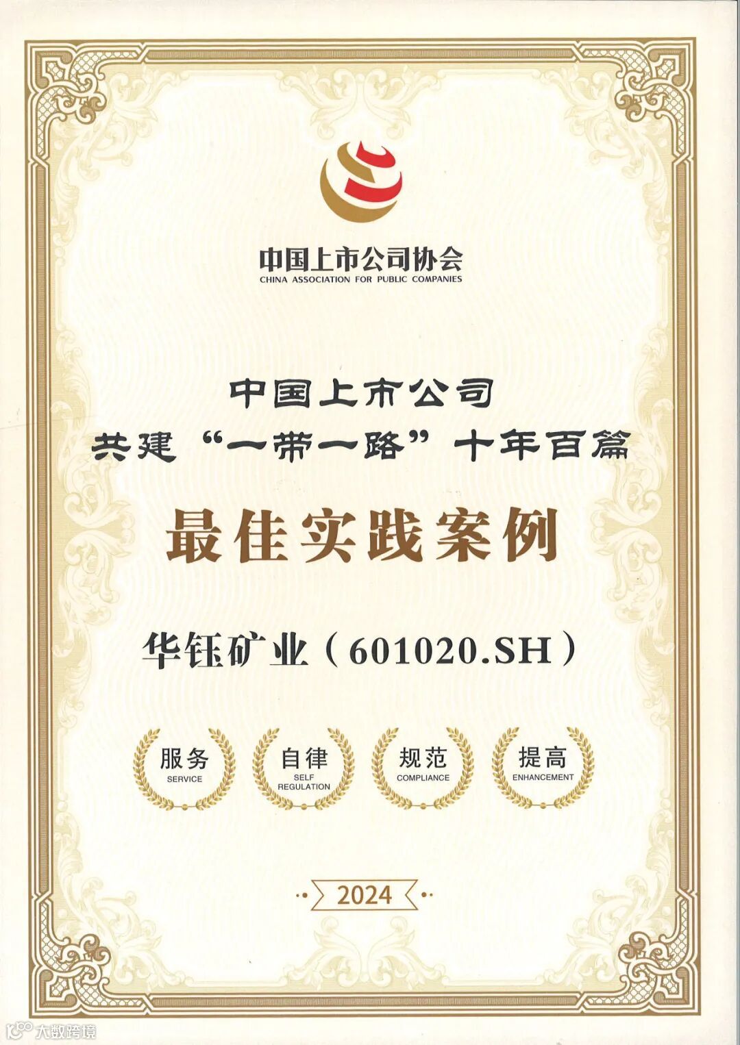 通讯员 席创贤 报道 5月22日-5月23日,一场备受上市公司瞩目的发布会在北京市朝阳区嘉瑞文化中心隆重举行。由中国上市公司协会境外上市公司分会主办的“上市公司高质量出海——《中国上市公司 共建“一带一路”白皮书 2023》(以下简称《白皮书》)发布会”如期召开,中国上市公司协会的领导以及众多参与共建“一带一路”的上市公司代表齐聚一堂,共同见证了《白皮书》首次被列入第三届“一带一路”国际合作高峰论坛务实合作项目清单和发布这一历史时刻。受主办方邀请,华钰矿业董事会办公室崔勇代表公司参会并现场领奖。