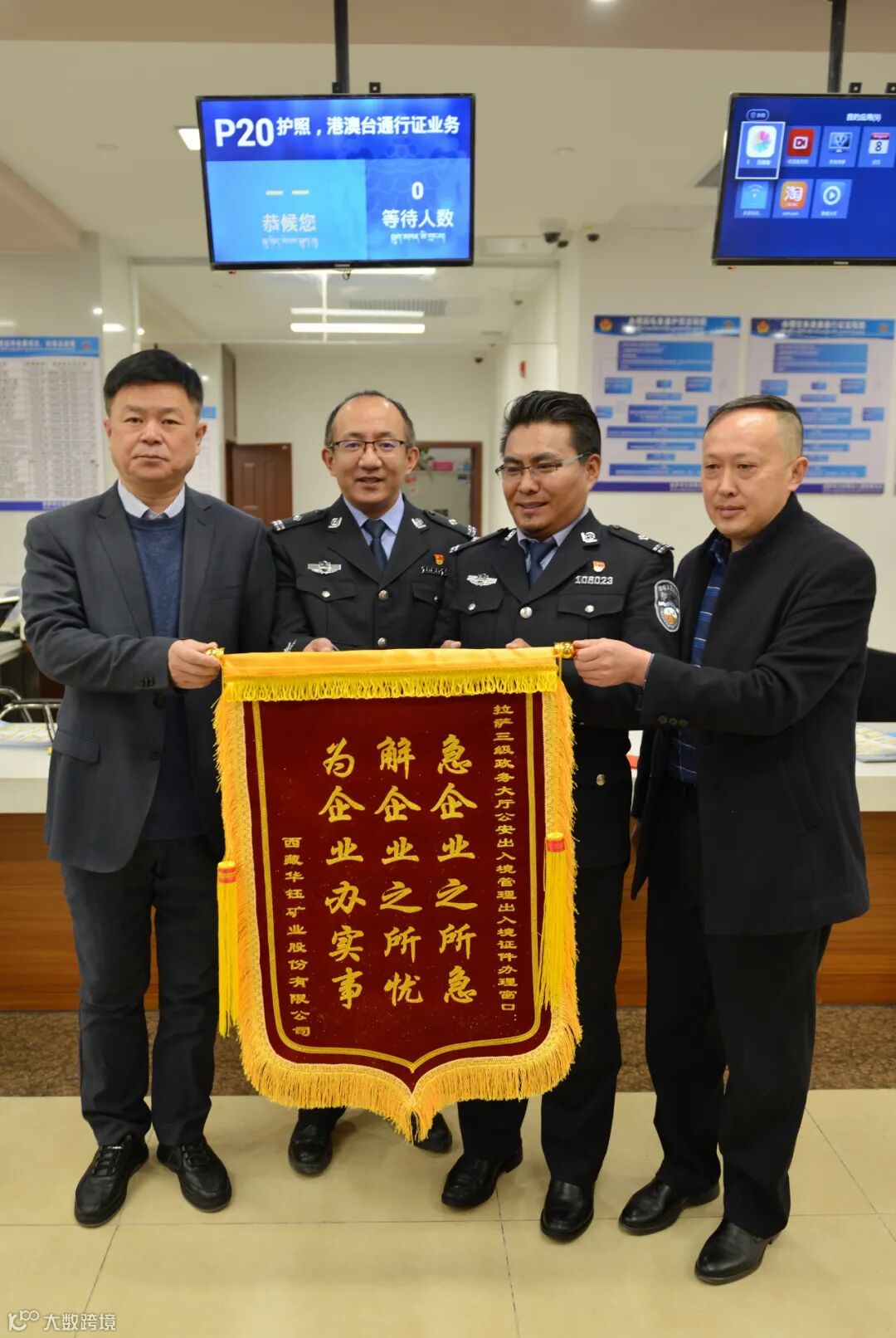 通讯员 席创贤 报道 2021年12月13日上午,西藏华钰矿业股份有限公司财务总监邢建军顺利从拉萨三级政务大厅公安出入境管理出入境证件办理窗口,领取了公司拟派遣驻塔吉克斯坦合资公司安装设备的11名技术人员的出国证件(护照),并为办事窗口赠送了锦旗。这是拉萨市公安局出入境管理支队为企业办实事,急企业之所急,解企业之所忧的具体体现。
