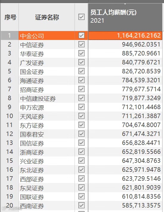 实际上,即使是证券行业内部,不同公司之间的收入差距也是巨大的。