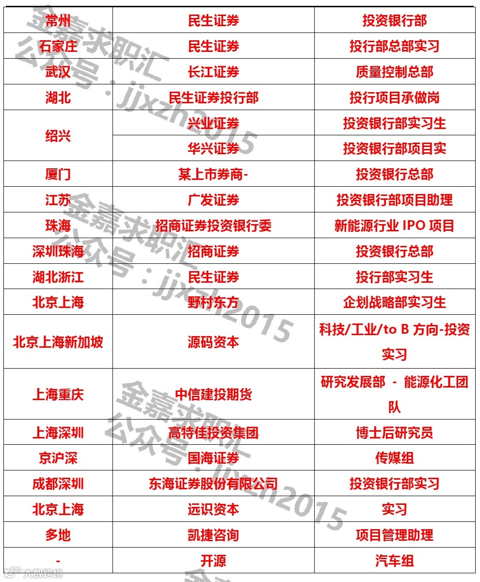 2、【加分项】:具备券商研究所实习经验;独立投资经验;制作PPT;金融知识;