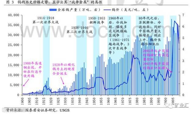 钨在国防中主要用于制造各种合金钢,钨是枪炮管、发动机用高温合金、火箭喷嘴、穿甲弹、电磁炮等生产的必须元素。历史上几次战争期间钨的需求和价格都有大幅提升,钨也被誉为“战争金属之王”。