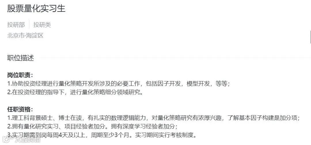 其次公私募量化投资、券商自营、股权衍生品等直接进行二级市场量化投资的岗位,需要具备充足的数学和编程能力。