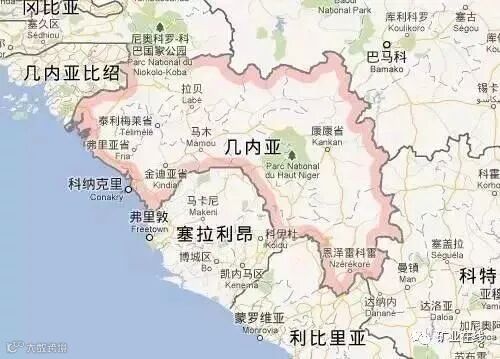 几内亚最好的铝土矿矿区,主要分布在弗里亚、金迪亚和博凯三个区。Prefecture储量约50亿吨;中几内亚拉贝专区(Labe)储量约5亿吨;上几内亚达博拉专区(Dabola)和杜盖(Tougue)铝土矿总储量也超过20亿吨,平均品位为:氧化铝44.1%,二氧化硅2.6%。