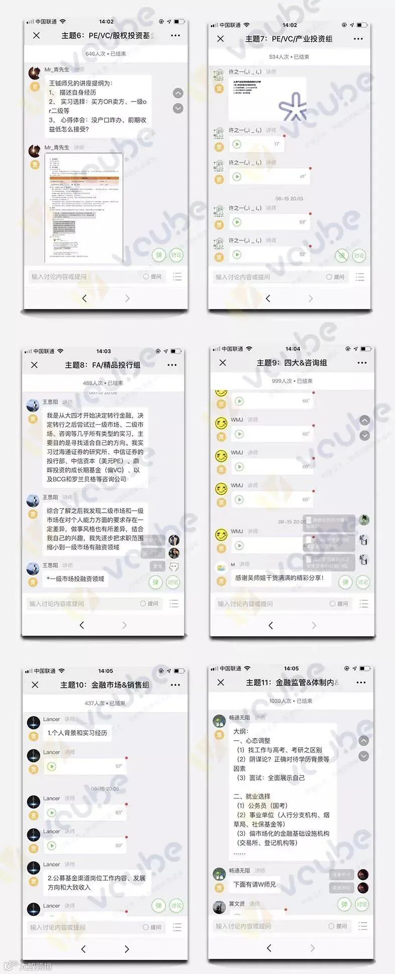 分享会涉及金融行业的各个细分领域,包括投行、行研、信托、基金、保险、租赁、四大、咨询、地产、互联网和体制内等多个方向。