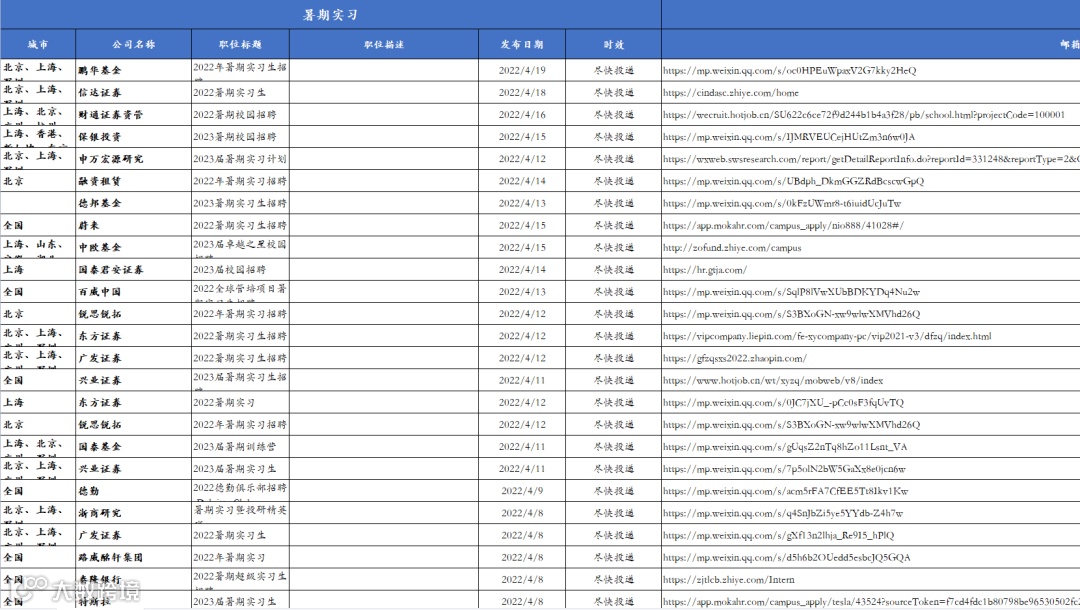 我们特意整理了一份最新的暑期实习网申时间表