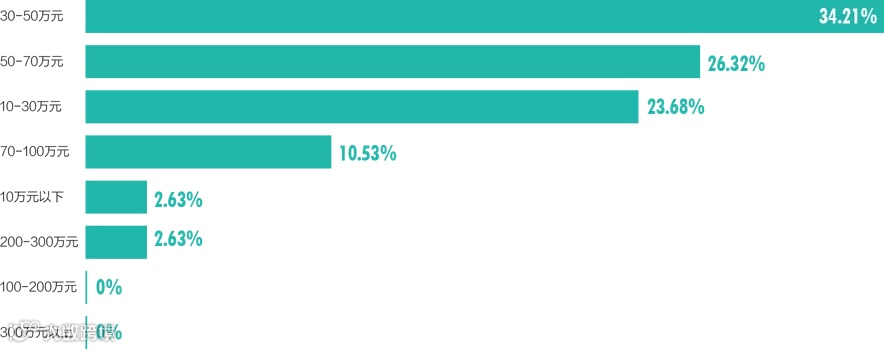 同时,也分别有10.53%和2.63%女性的年薪水平在70-100万元和200-300万元,而年薪水平在10万元以下的只有2.63%。